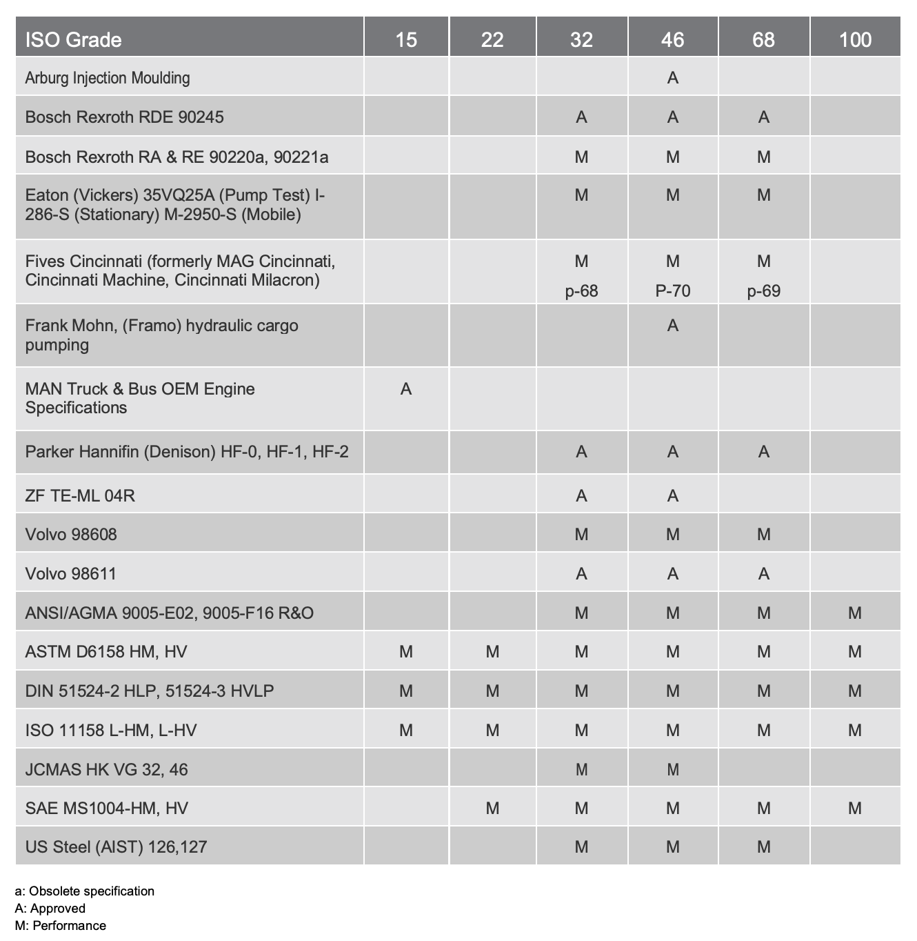 Always confirm that the product selected is consistent with the original equipment manufacturer’s recommendation for the equipment operating conditions and customer’s maintenance practices